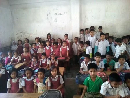বাঞ্ছারামপুর(ব্রাহ্মণবাড়িয়া) প্রতিনিধি : বাঞ্ছারামপুরে মডেল সরকারি প্রাথামিক বিদ্যালয়ে ভবন সংকটের কারনে শিক্ষা কার্যক্রম ব্যহত। পূজা দাস(৮) তার স্কুল বান্ধবী বিথি,প্রিয়ন্তী,সপ্নিল এবং প্রিয়া সবাই ৩য় শ্রেনির ছাত্রী।পড়ছে ব্রাহ্মণবাড়িয়ার বাঞ্ছারামপুর মডেল সরকারি প্রথমিক বিদ্যালয়ে। উল্লেখিত ৫জনই ৩ ফুট ৫ ইঞ্চি দৈর্ঘ্যরে ছোট্ট সরকারি স্কুল ব্যাঞ্চে। ব্যাঞ্চটিতে বই-খাতা রাখার যায়গা নেই। বসতে হচ্ছে গাদা গাদি করে। পূজা জানায়; ‘‘একটা ব্যাঞ্চে ৫ জন বইয়া ক্লাস করতে খুব কষ্ট হয়। একজনের কোলের উপর আরেকজন বসন লাগে। সারের পড়ায় মনোযোগ দিতে পারিনা’’।