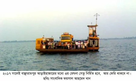 বর্তমানে বাঞ্ছারামপুর-আড়াইহাজারের মধ্যে ফেরী গাড়ি চলাচল করছে।